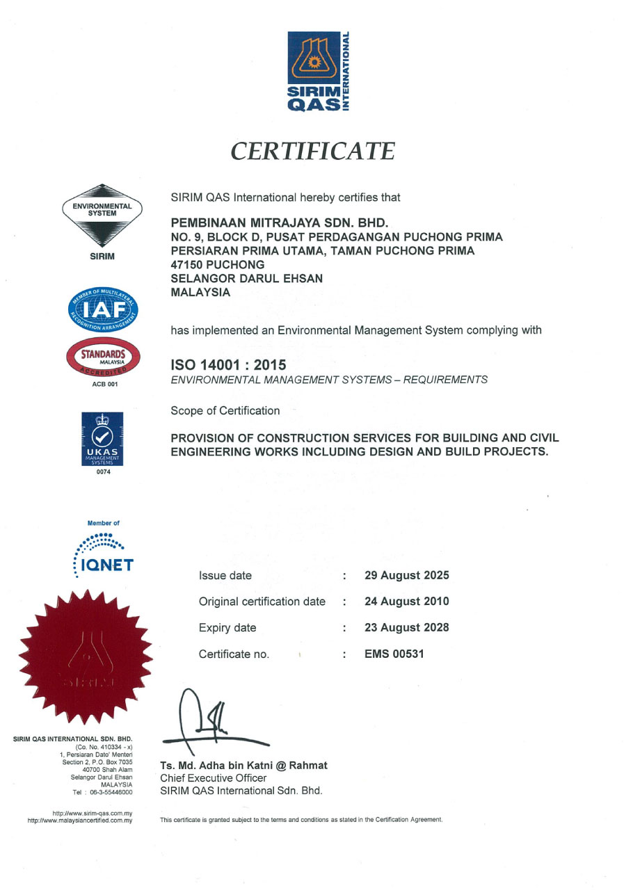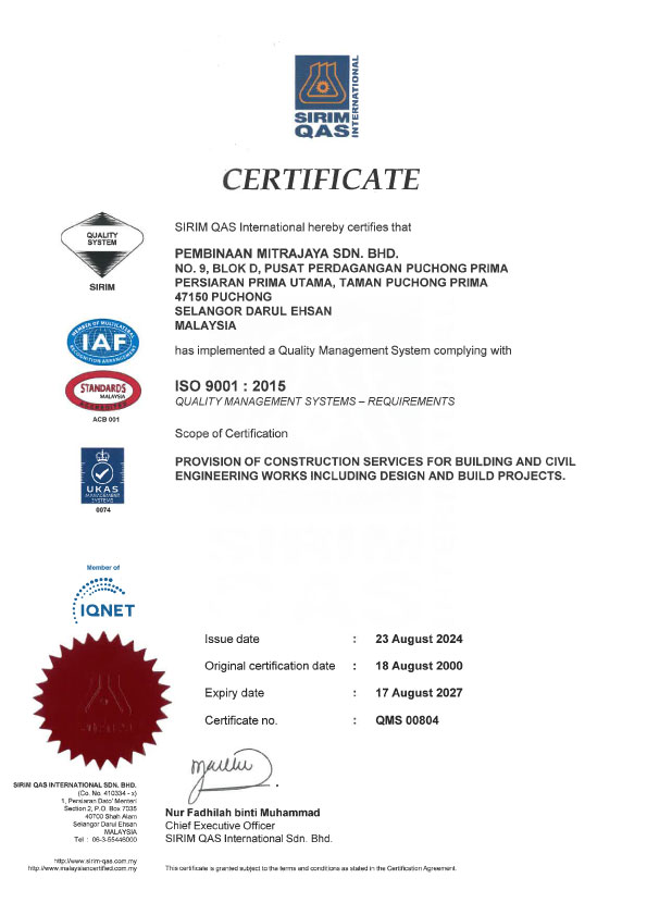 Quality: ISO 9001 is an internationally recognised quality management system (QMS) standard. ISO 9001 belongs to the ISO 9000 family of standards which is related to quality management systems. The certification of ISO 9001 is important to ensure that we always meet the needs of our customers and other stakeholders while also meeting statutory and regulatory requirements related to the product. Certification of ISO 9001 also helps us to grow market share, driving costs down and managing risk more effectively.