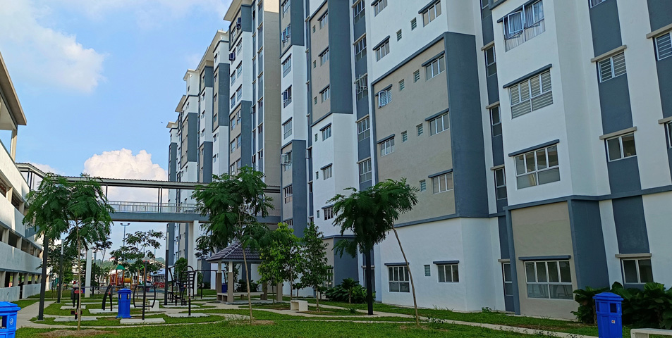 A Grand Entrance located at the centre of the site greets visitors to this development followed by a tree-lined boulevard, culminating in the Clubhouse porte cochere. The Clubhouse accommodates a large variety of facilities such as a 10-meter Look-out tower complete with a lengthy winding water slide, gymnasium, sauna room, games room, function room and cafeteria, just to name a few. Apart from that, other facilities include tennis courts, a half basketball court, putting greens for golf enthusiasts and elevated landscape decks that traverse the length of the site.
